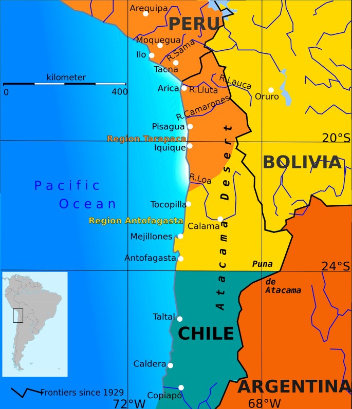 Luego de prolongados conflictos limítrofes, Chile y Bolivia firmaron un convenio en 1874. Bolivia se comprometía en no incrementar los impuestos a las corporaciones salitreras chilenas en la región de Antofagasta. Pero poco después Bolivia desacreditó tal convenio aludiendo una razón debatible: todas esas corporaciones salitreras eran realmente británicas. Chile rechazó los incrementos tributarios impuestos por Bolivia. Cuando Bolivia amenazó en confiscar las mineras británicas, Chile le declaró la guerra.