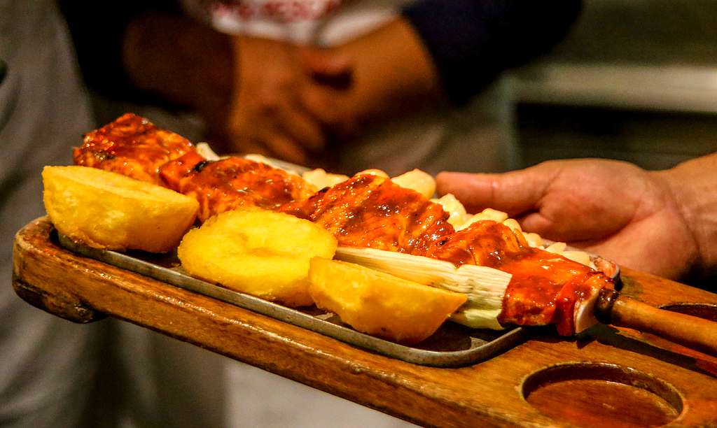 Aunque ahora es un plato típico de Lima, el Anticucho nació en los andes peruanos. Su nombre está en quechua: “anti’’ significa Andes y “kuchu’’ corte. Su ingrediente principal es el corazón de res; pero en la época incaica lo preparaban con carne de llama y lo aderezaban con hierbas aromáticas y ají.