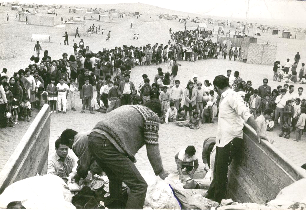 “Construyen chozas en la arena, con palos, esteras, juncos; trazan calles; organizan las calles en lotes, los lotes en manzanas: 24 lotes una manzana; 16 manzanas un grupo comunal. Y luego en sectores. Se inspiran de las comunidades indígenas, de las viejas comunidades indígenas y su modo de organización. Se inspiran del ayni, un sistema de ayuda mutua de los nativos andinos.”