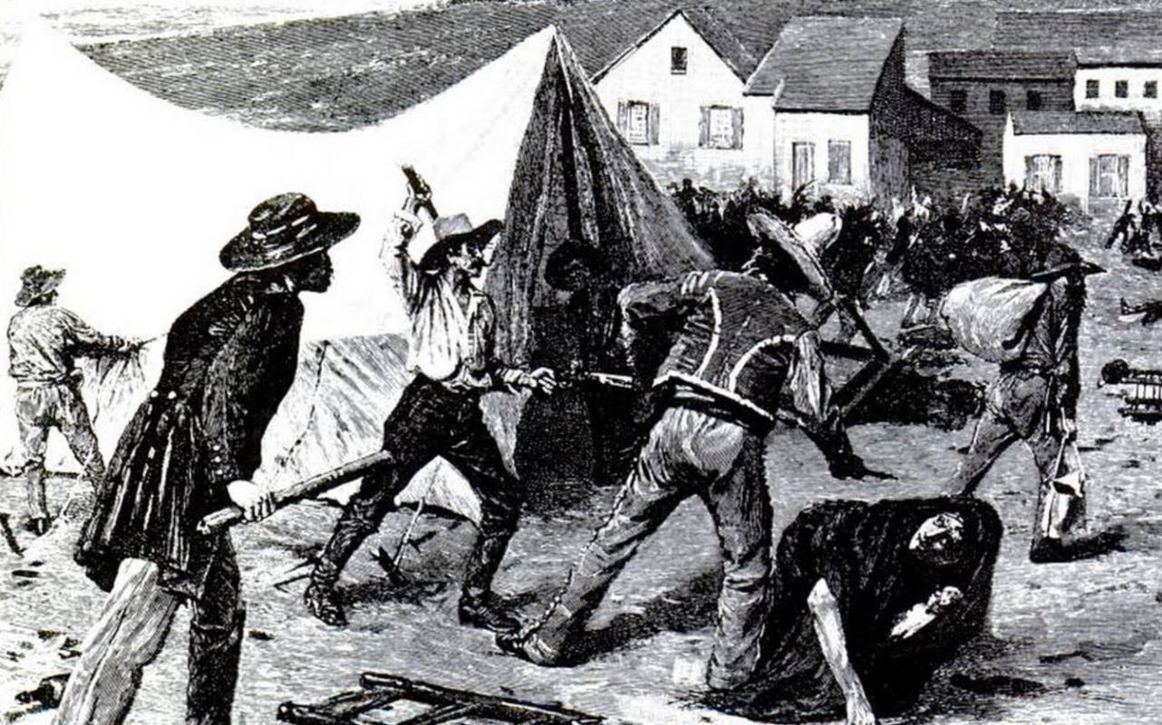 En la noche del 15 de julio, la Sociedad de los 42 había estado bebiendo en un bar. De alguna manera, animaron a la población a levantarse contra los latinos. Muchos racistas y fanáticos se unieron a ese grupo. Esa misma noche, la turba recorrió las orillas del río y destruyó las decenas de tiendas de campaña de Peruanos y Chilenos. A las personas con rasgos faciales hispanos se les obligaba a hablar. Los que hablaban español o tenían acento fueron golpeados.